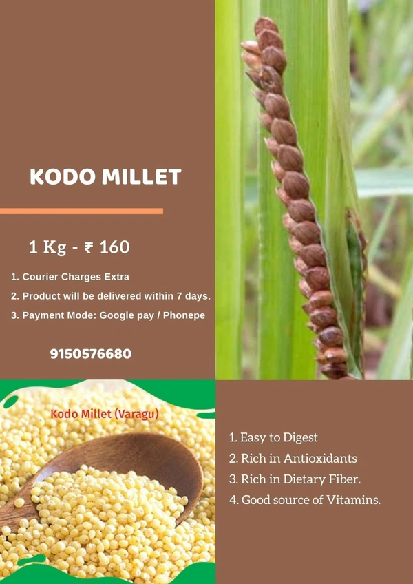 Regular consumption of Kodo Millet is beneficial for postmenopausal women suffering from metabolic diseases like cardiovascular disease, high blood pressure and high cholesterol levels. It helps to hydrate your colon and prevent constipation. Controls your blood sugar.