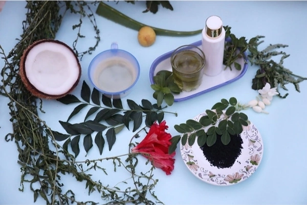 6.முதியார் கூந்தல் எண்ணெய்/தைலமில் கரிசாலை, வெட்டிவர், நெல்லிக்காய், கருஞ்சீரகம், செம்பருத்தி, வெந்தயம், மிளகு, கீழாநெல்லி, ஆலம் விழுது போன்ற பல மூலிகைகள் உள்ளன.
